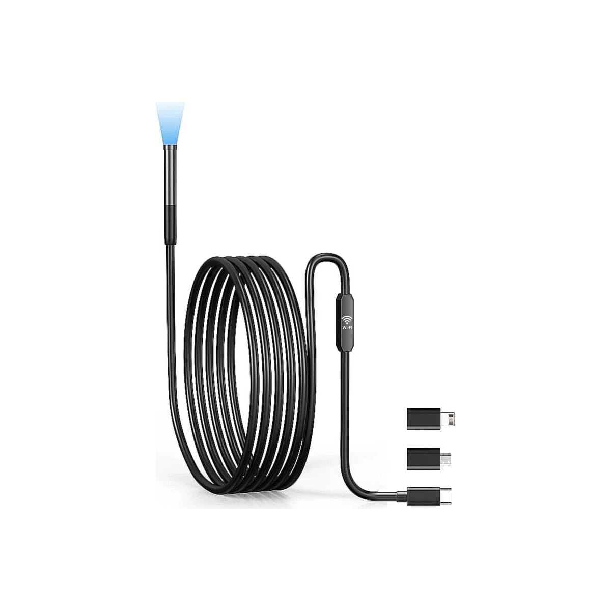 Портативный USB-видеоэндоскоп iCartool IC-V801 имеет камеру 2 Мп и полужесткий зонд диаметром 7,9 мм и длиной 1м. Прибор оснащен разъемом USB Type-C и переходниками Lightning и Micro-USB, благодаря чему совместим практически со всеми смартфонами/планшетами на базе iOS/Android. Питание осуществляется за счет устройства, к которому подключен эндоскоп, а передача изображения происходит через модуль Wi-Fi, интегрированный в зонд.
