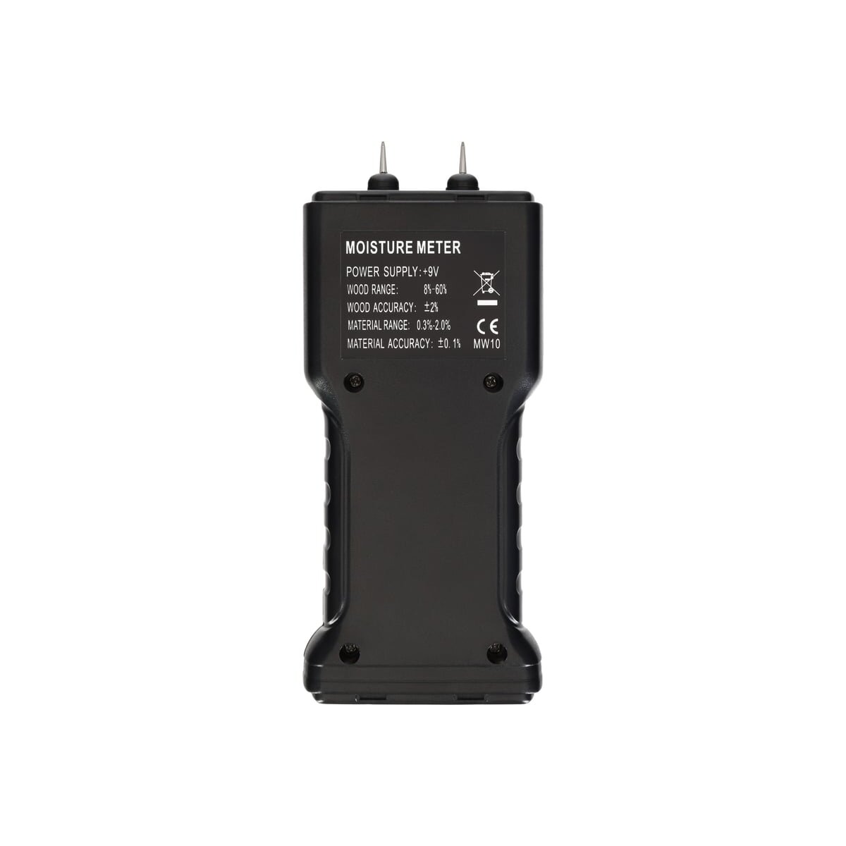 Датчик влажности (влагомер) Ermenrich Wett MW10 – портативный измерительный инструмент, который определяет уровень влажности разных материалов: в первую очередь сделанных из древесины, но также и предназначенных для строительных работ (растворов, смесей и проч.). Он работает по контактной технологии, т. е. имеет пару игольчатых сенсоров, которые и проводят замеры. Также прибор может определять температуру.