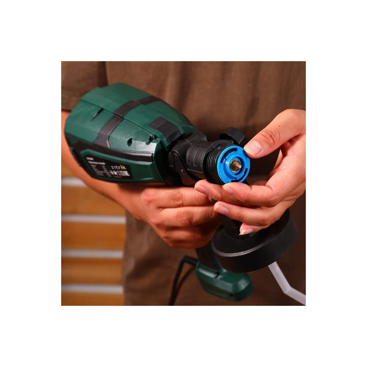 - Поворотный регулятор формы факела, дальности распыления, расхода краски