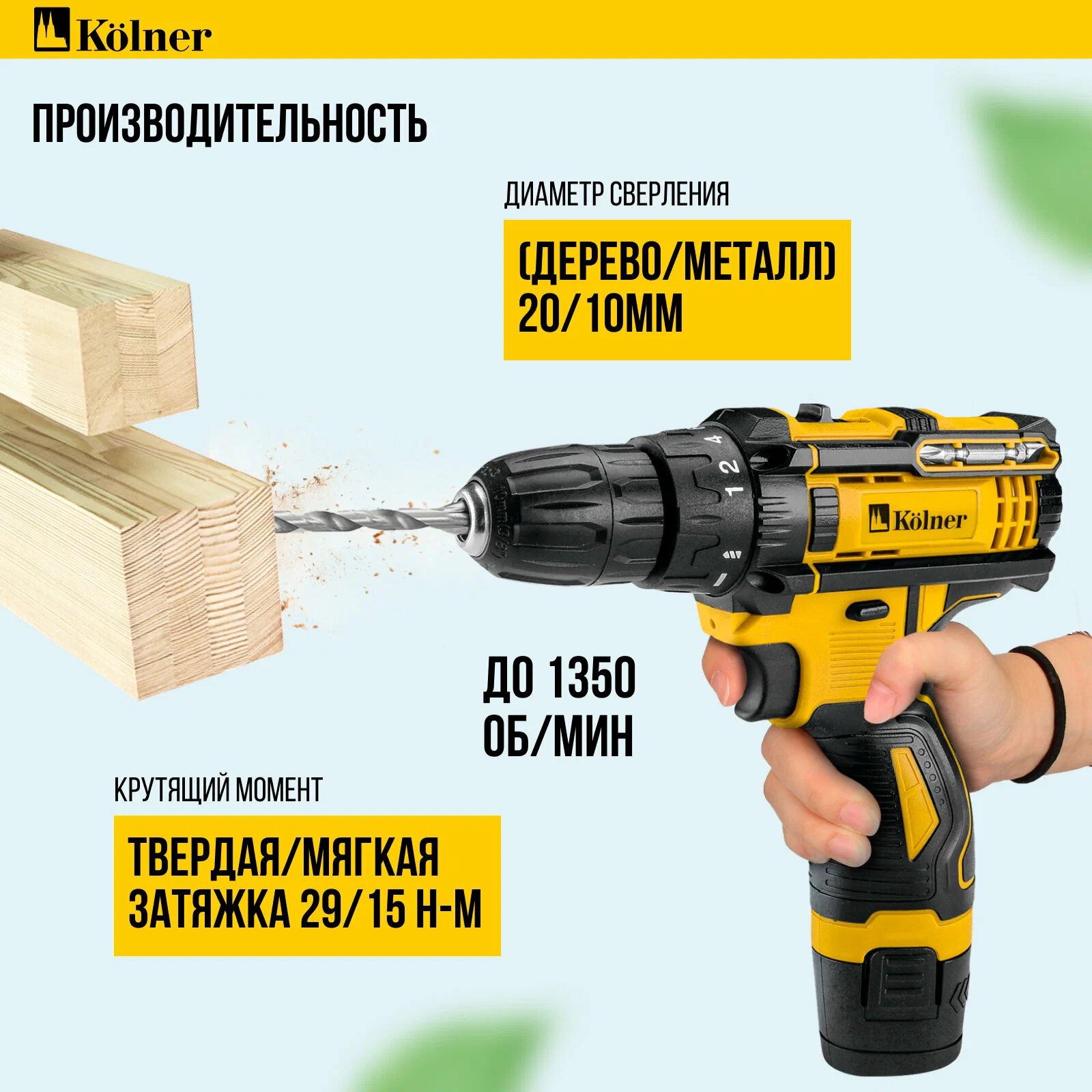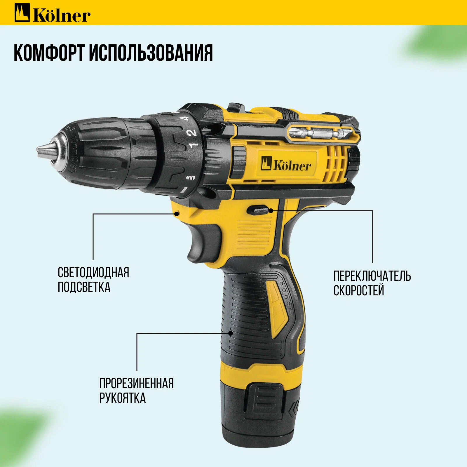 —Дрель-шуруповерт KOLNER KCD 12/2C