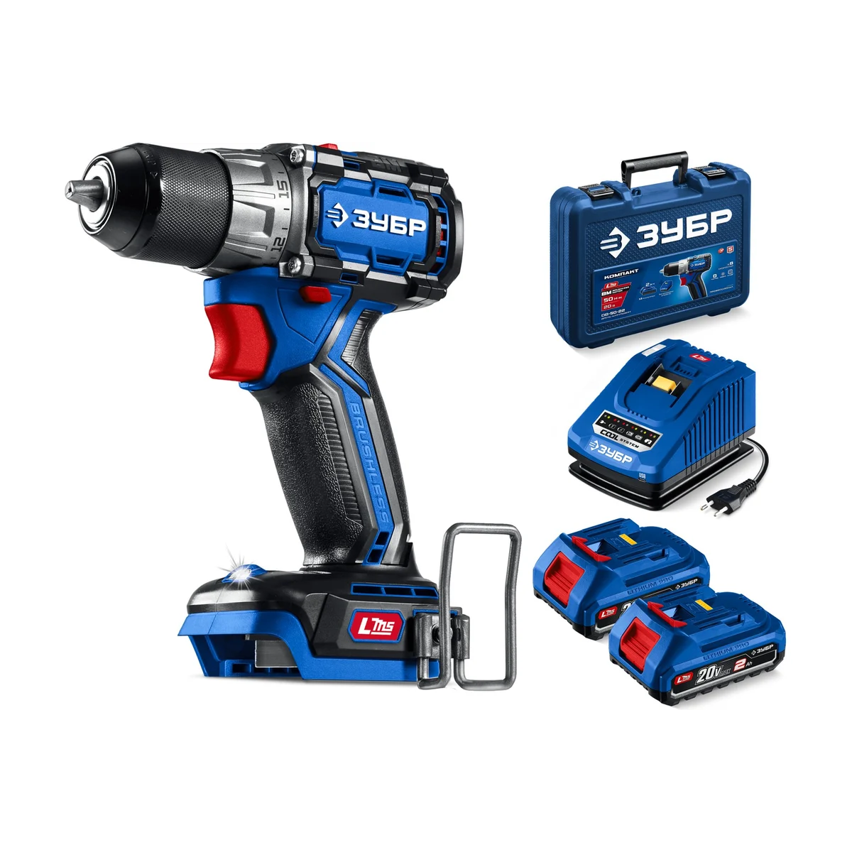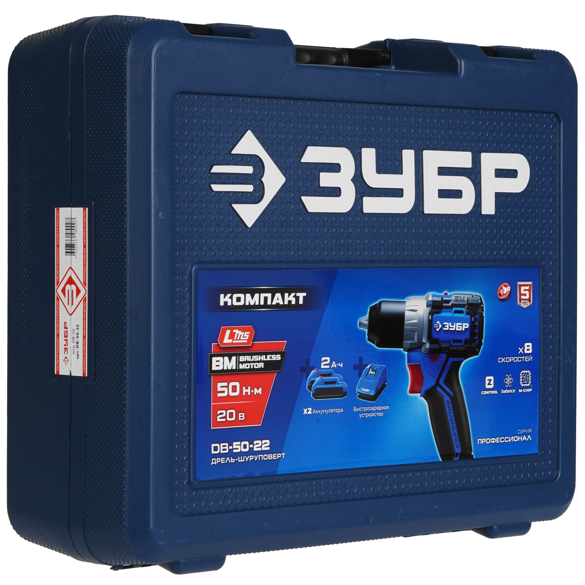 ЗУБР Профессионал Компакт 20 В, 50 Н·м, 2 АКБ LMS (2 А·ч), бесщеточная дрель-шуруповерт, кейс DB-50-22 - высокотехнологичная модель в новой линейке аккумуляторного инструмента ЗУБР серии LMS.