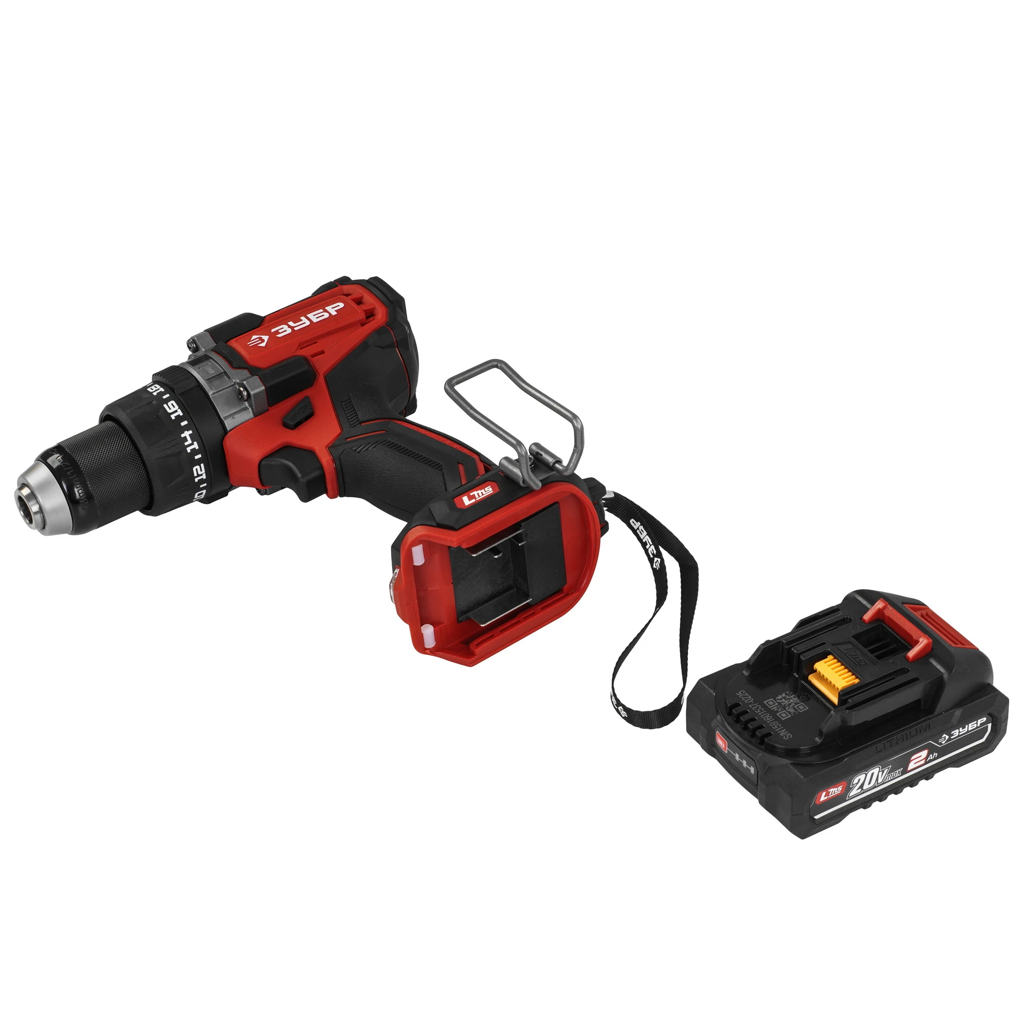 - Скоба для крепления на поясе, устанавливаемая с любой стороны инструмента