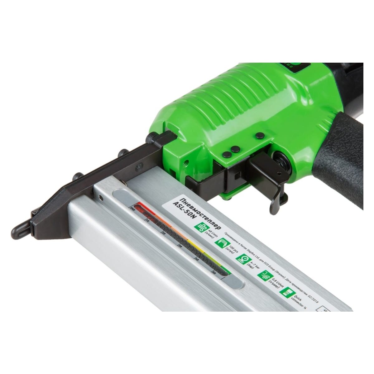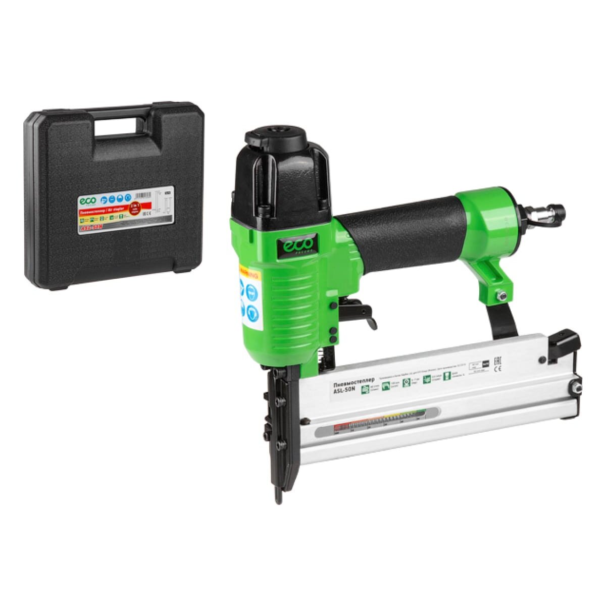 Скобозабивной пневматический пистолет ECO ASL-50N используется при отделке помещений и строительных работах.