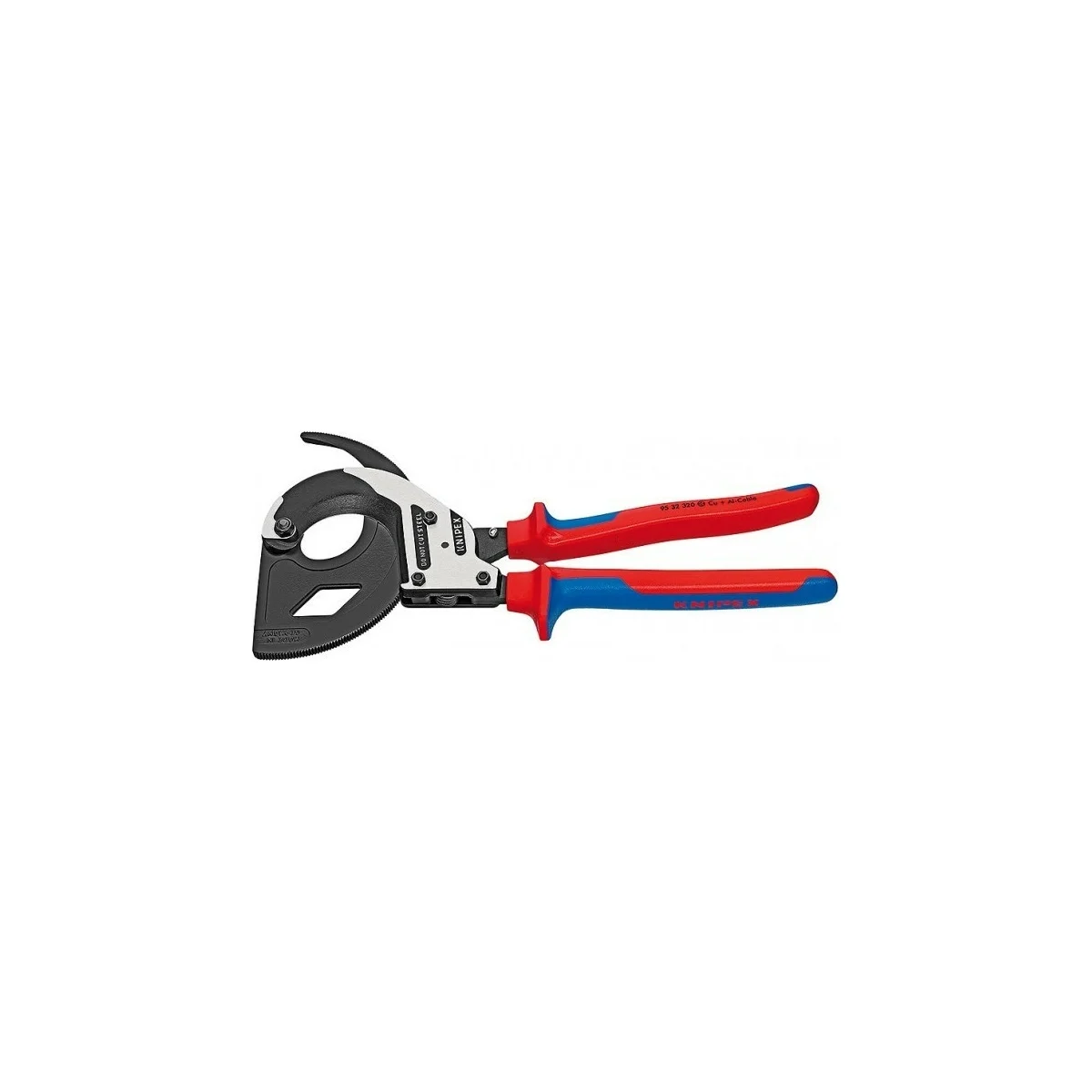 Кабелерез KNIPEX KN-9532320 - это специальные клещи, которые используются для разрезания медных и алюминиевых кабелей (как одножильных так и многожильных) диаметром до 60 мм. Инструмент оснащен интонационным трехходовым приводом, запатентованным фирмой KNIPEX. Это обеспечивает возможность легкого реза даже одной рукой. Рабочая часть инструмента изготовлена из кованой инструментальной стали и покрыта черным лаком, что делает кабелерез прочным и долговечным.