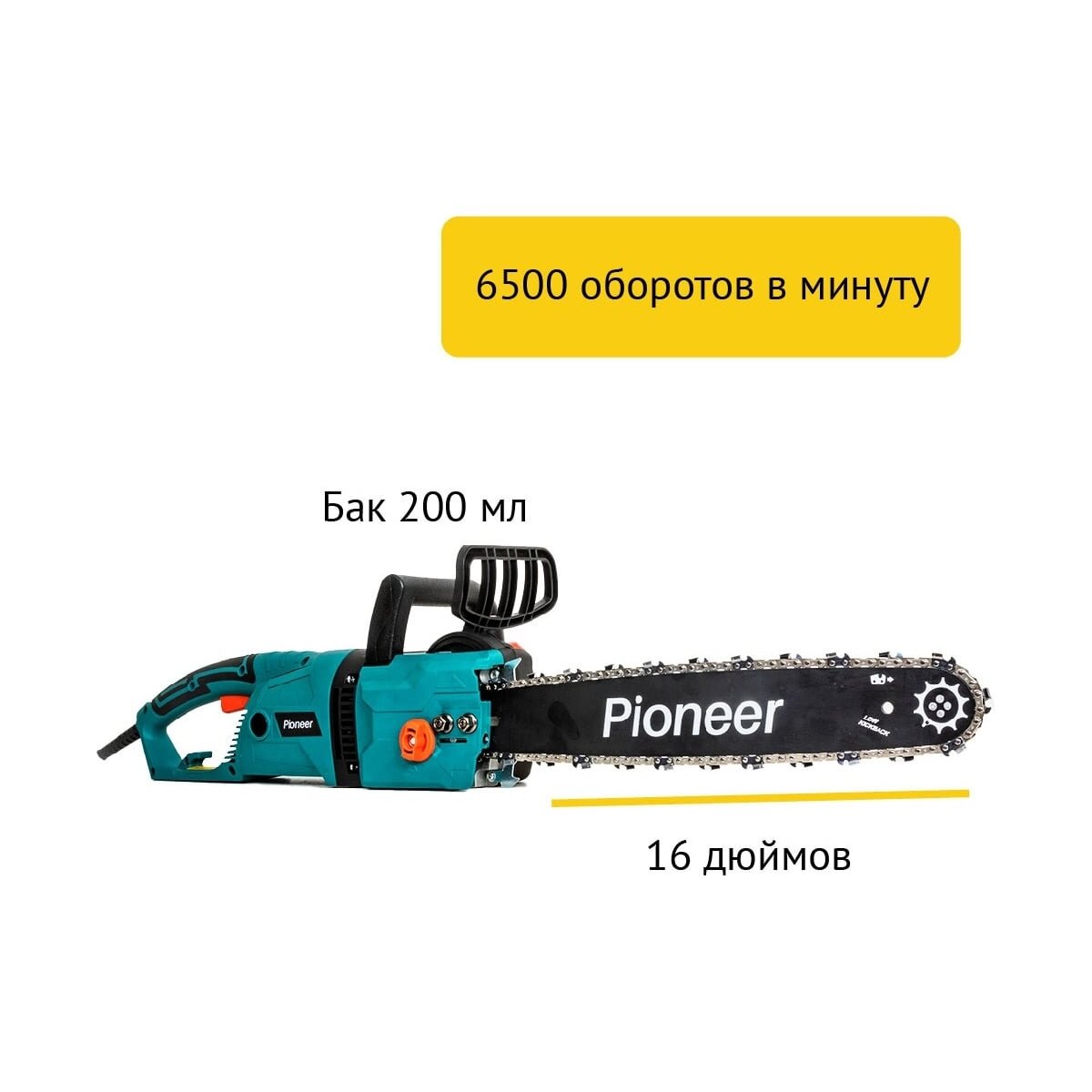 Цепная пила Pioneer ECS-2016-06V предназначена для работы с древесным материалом и деревом, а именно для распиловки бревен и обрезки деревьев.