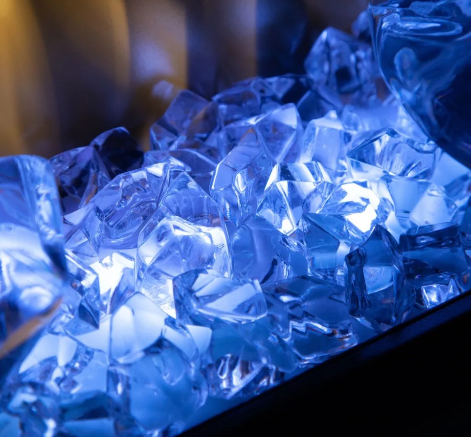 светодиодные лампы, муляж - дрова и кристаллы