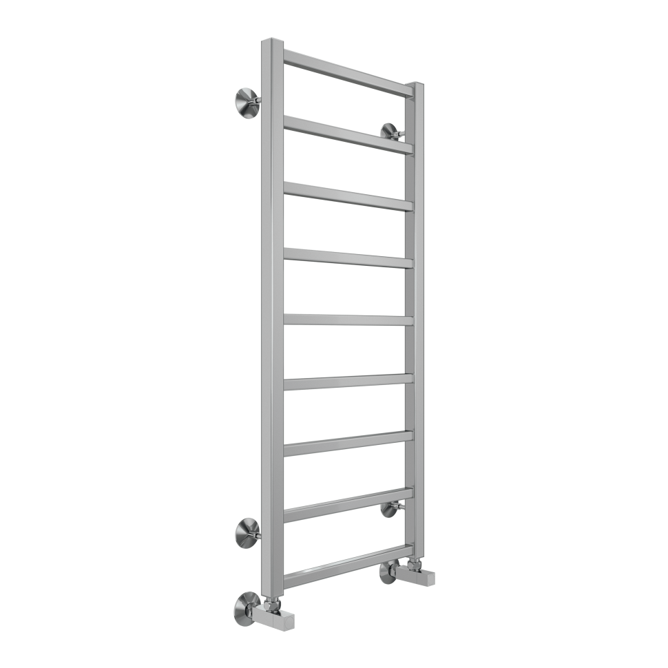 Модель водяного полотенцесушителя Terminus Контур относится к линейке в стиле хай-тек, тяготеющей к лаконичным формам и хромированным поверхностям, и отличается наличием дополнительной прогреваемой полки для хранения и сушки полотенец.