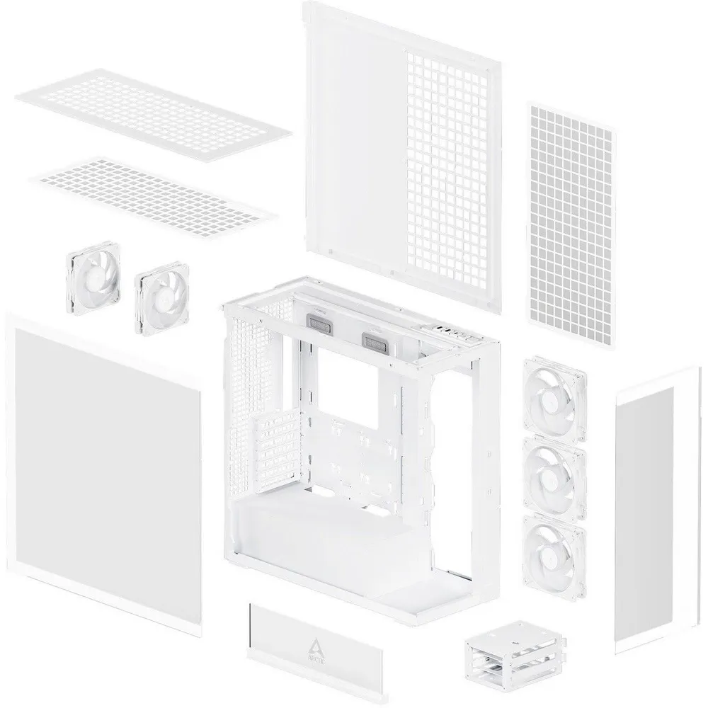 Корпус, вентиляторы 5 шт, пылевые фильтры 2 шт, набор для кабель менеджмента, документация