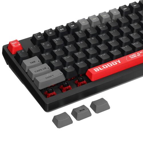 Клавиатура проводная A4Tech Bloody S98 Red оснащена кейкапами из пластика усиленной жесткости. На нем сохраняется яркость символов. Для подключения аксессуара к необходимому устройству предусмотрен 1.8-метровый отсоединяемый кабель.