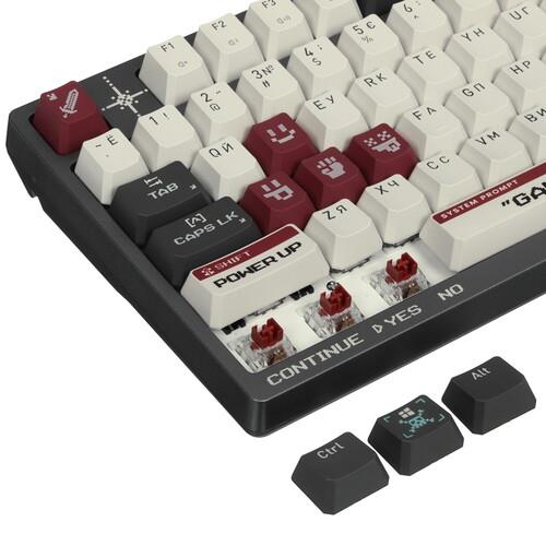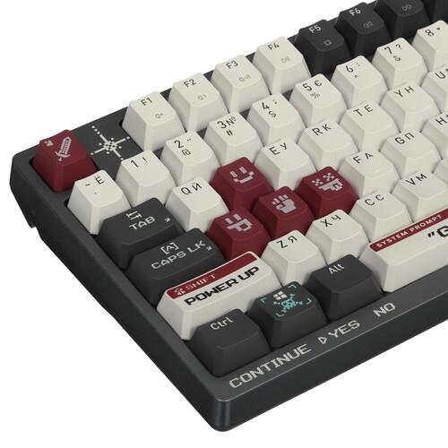Полноразмерная клавиатура проводная+беспроводная A4Tech Bloody WS98 Pixels Red серого цвета является механической. Подойдет для любителей играть в видеоигры. Она имеет RGB подсветку клавиш, цвет которой можно легко поменять. Шумоизоляция корпуса позволяет снизить шум от нажатия клавиш. Модель может работать удаленно через Bluetooth или радиоканал.