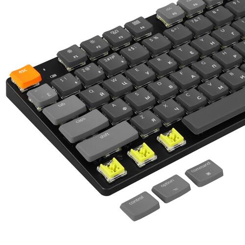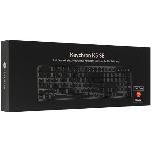 Клавиатура Keychron K5SE [K5SE-E4] оснащена тактильными механическими переключателями Keychron Banana Optical Low-Profile с низкопрофильной конструкцией. Короткий ход клавиш обеспечивает минимальный изгиб кистей и снижение усталости при вводе текстовых данных. Модель отличается полноразмерной раскладкой с 104 клавишами, включая цифровой блок.
