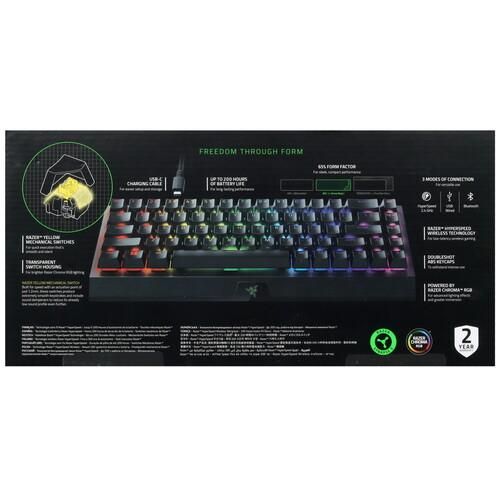 Клавиатура беспроводная, проводная Razer BlackWidow V3 Mini HyperSpeed [RZ03-03890700-R3R1] – игровая механическая модель с черным корпусом из металла и пластика в формате исполнения 65%. Фирменные линейные переключатели гарантируют долговечную и безотказную работу. А бесшумная конструкция клавиш обеспечивает максимум удобства.