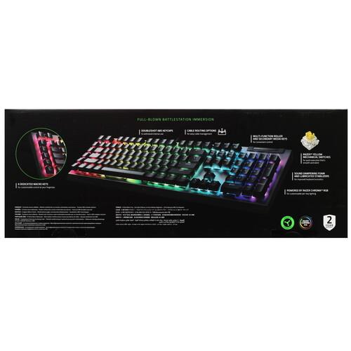 Клавиатура проводная Razer BlackWidow V4 X [RZ03-04702500-R3R1] обеспечивает точность ввода данных в программах и комфортное управление в играх. Она оснащена механическими линейными переключателями Razer Yellow с быстрой реакцией на каждое нажатие и низким уровнем шума. Подсветка символов с палитрой RGB гарантирует удобство в условиях недостаточной освещенности и погружение в игровой процесс.