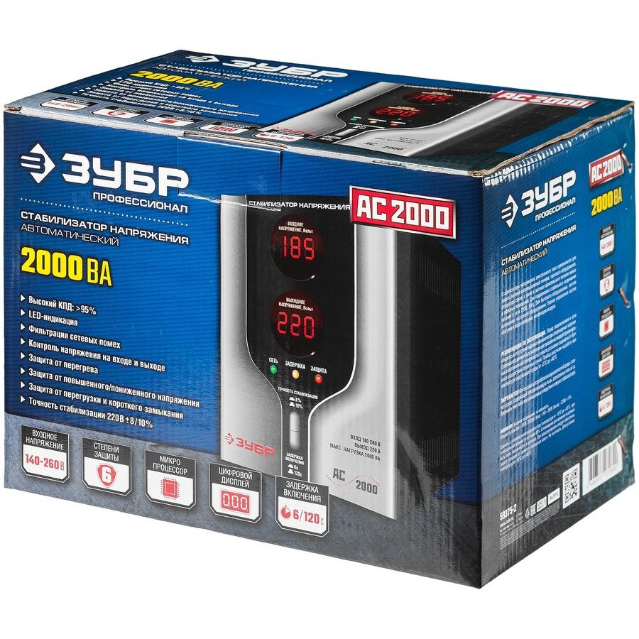 Особенности: Стабилизатор напряжения ЗУБР предназначен для точного и быстрого выравнивания сетевого напряжения для защиты бытовой техники и оборудования. Устройство обеспечивает эффективную защиту электроприборов от нестабильного по значению напряжения в сети. Релейный тип стабилизации.