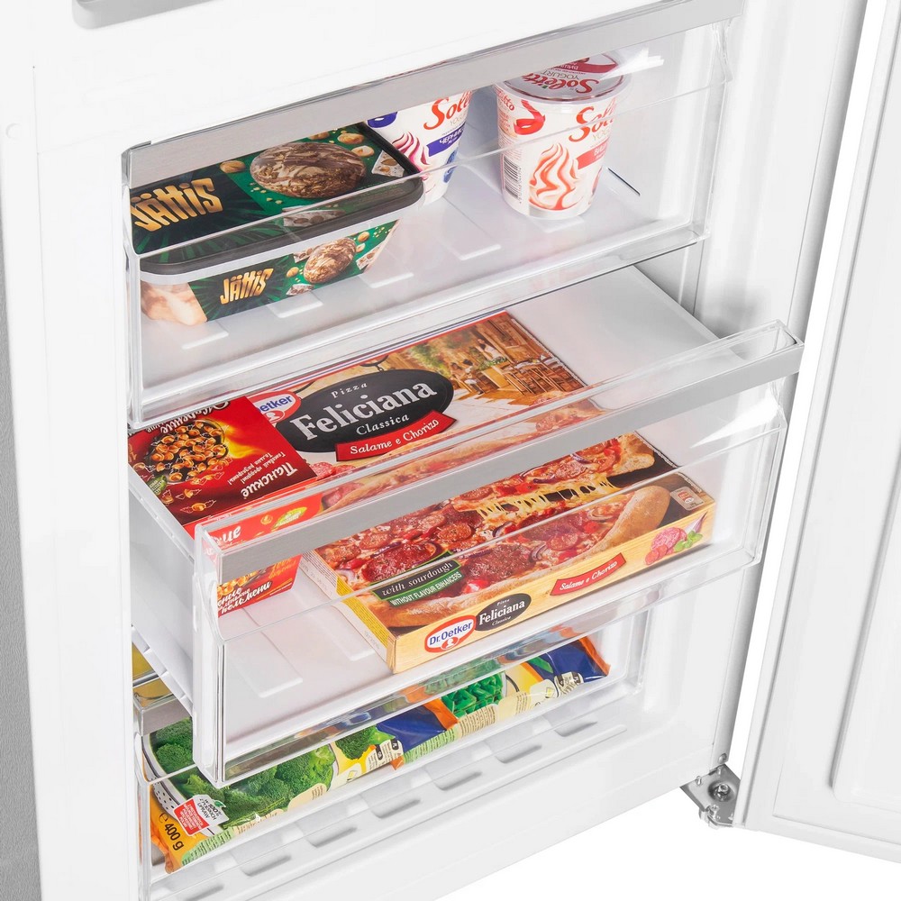 Двухкамерный холодильник с сенсорным управлением. Фасады дверей выполнены из закаленного стекла. Современная система охлаждения No