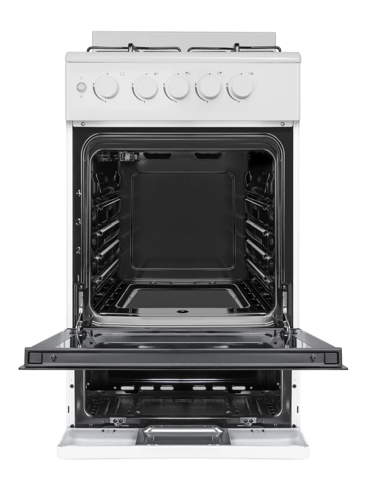 Механический таймер с звуковым оповещением помогает точно выдерживать время приготовления блюд в духовке. Эргономичные переключатели обеспечивают плавную регулировку пламени конфорок.
