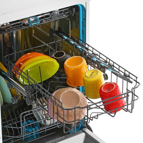 **Haier HDWE11-36WE4RU** разработана для максимального удобства. Три **корзины с регулируемой высотой** позволяют разместить посуду разных размеров. Специальная полка для чашек и складные держатели обеспечивают оптимальное использование пространства.**Безупречная чистота посуды**