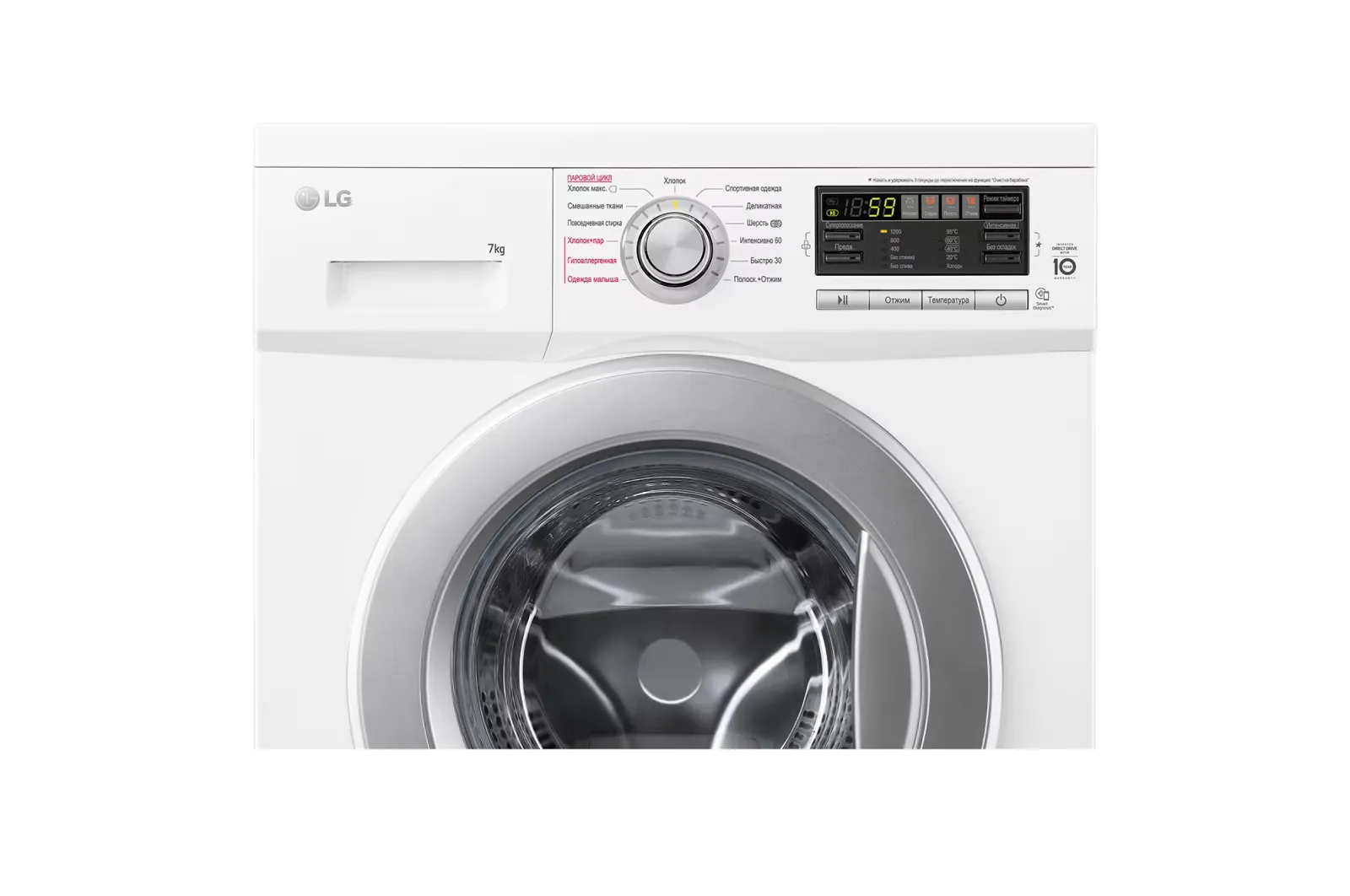 Главным преимуществом этой модели является инверторный двигатель Direct Drive, который крепится непосредственно к барабану без ремней и шкивов. Это решение обеспечивает более тихую работу, уменьшает вибрации и повышает долговечность механизма. Благодаря прямому приводу стирка становится на 30% тише по сравнению с обычными моделями.