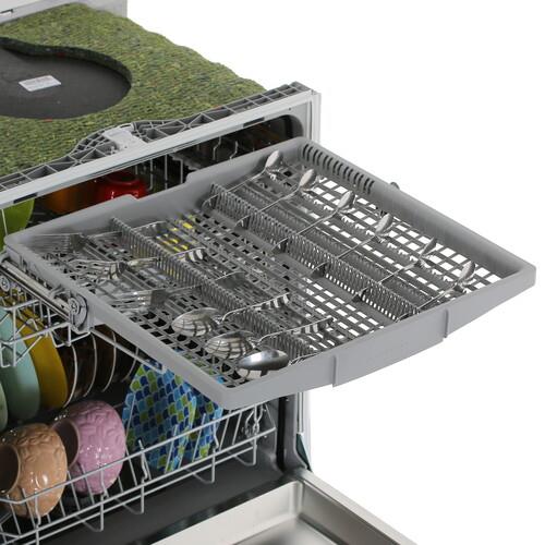 Bosch SMV25EX02E поддерживает 5 программ мойки и 4 температурных режима. Предусмотрен режим сокращения длительности программ, что позволяет экономить время. Для сушки устройство задействует теплообменник: в результате циркуляции воздуха внутри аппарата капли воды испаряются. Для размещения посуды внутри машины установлены 3 корзины. Регулировка верхнего короба по высоте позволяет оптимизировать внутреннее пространство. Нижний короб имеет направляющие для удобного размещения тарелок.