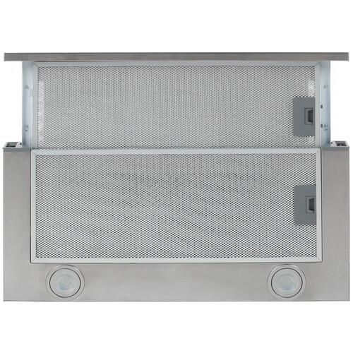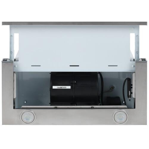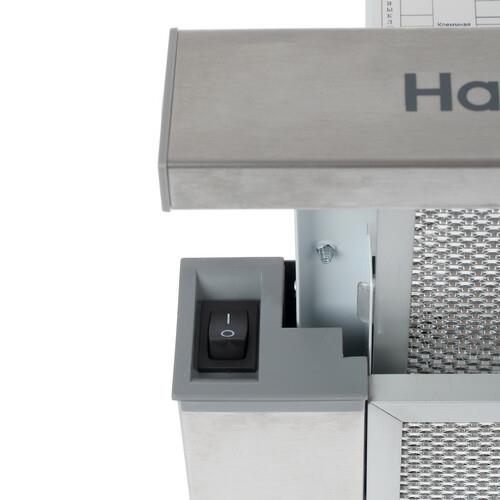 Производительность Haier HVX-T671X составляет 700 м³/ч. Для эффективной работы вытяжки следует повернуть выдвижную панель на себя: усилий не потребуется, поскольку панель установлена на телескопических направляющих. Обладая мощностью 120 Вт, устройство поддерживает удобное управление скоростными режимами при помощи кнопок: всего предусмотрено два режима скорости. Ширина встраивания прибора соответствует 60 см.