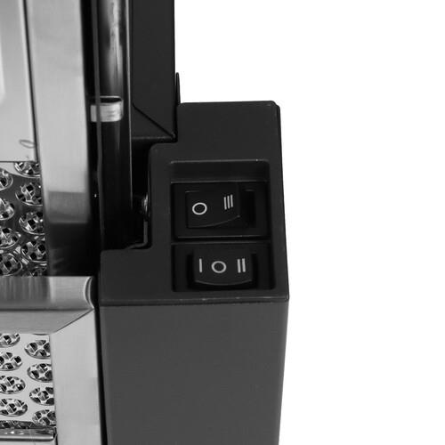 HotPoint HPTF 63R BLG — черная телескопическая вытяжка размером 60 см. Ек внешняя панель выполнена из стекла. Производительность этой модели составляет 344 м³/ч. Вытяжка имеет три уровня скорости, а также жироулавливающий фильтр, входящий в комплект. Освещение осуществляется с помощью LED-ламп. Тип управления — механический. Максимальный уровень шума составляет 64 дБ.
