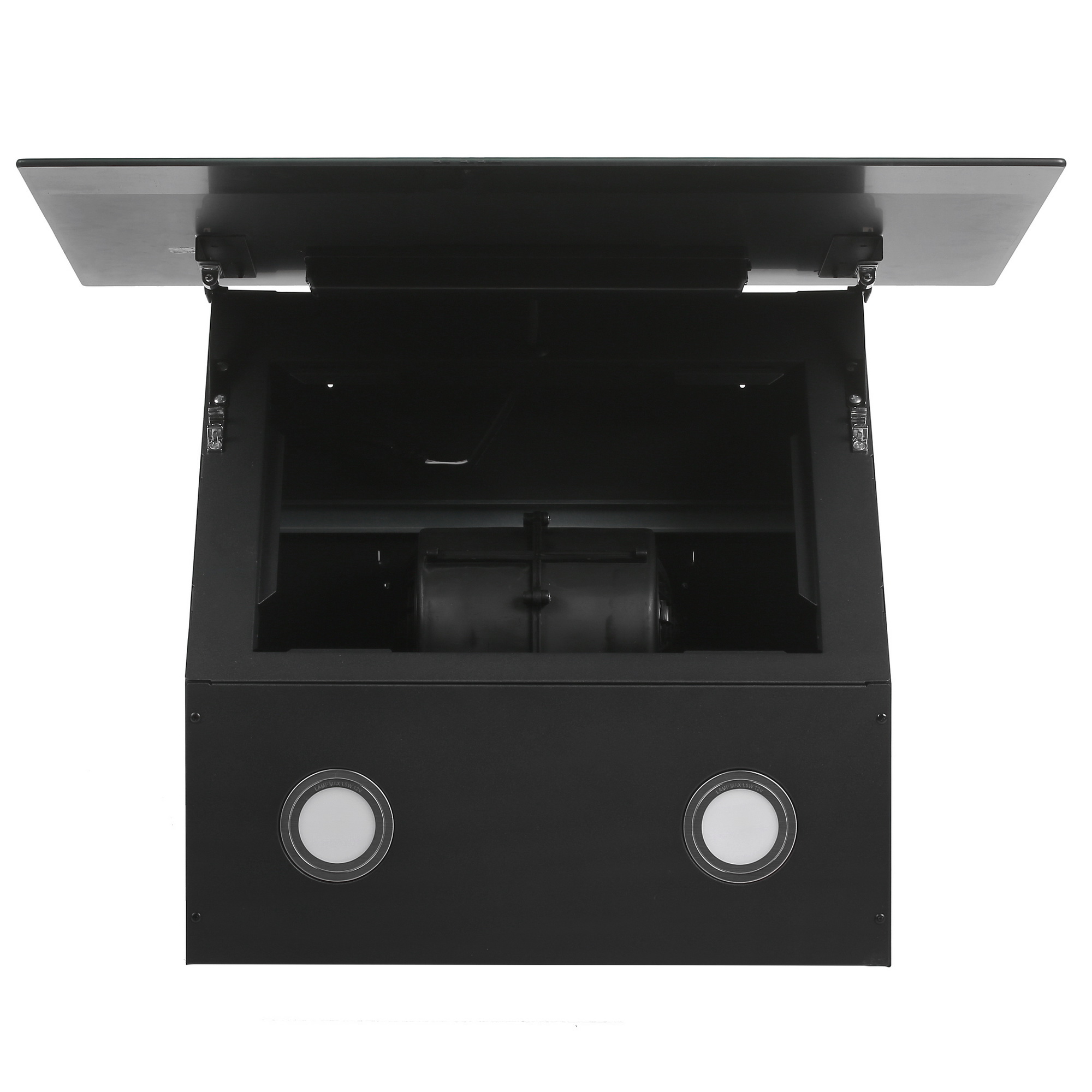 Модель оснащена двумя светодиодными лампами мощностью 1.5 Вт каждая. Они обеспечивают яркое и экономичное освещение рабочей поверхности. Антивозвратный клапан предотвращает попадание запахов из вентиляционной шахты обратно в кухню. Также имеется кабель питания с вилкой для удобного подключения.