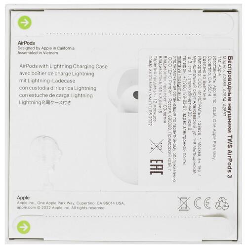 Наушники TWS Apple Airpods 3 с технологией пространственного звука обеспечивают трехмерное звучание композиций. Благодаря адаптивному эквалайзеру устройство подстраивает звучание под вас. Для вашего слуха открыт широкий спектр детализированных звуков ‒ от насыщенных. глубоких басов до высоких чистых нот. Зарядный футляр восполняет заряд аккумулятора и защищает устройство от повреждений. Защита по стандарту IPX4 позволяет наушникам не бояться пота и брызг воды. Это делает их незаменимыми для тренировок.