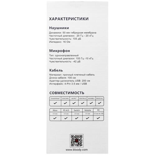 Регулируемое оголовье и амбушюры из протеиновой кожи гарантируют комфортную посадку. Гарнитура A4Tech Bloody M590i оснащена аудиокабелем с разъемом 3.5 мм и контроллером с подключением по интерфейсу USB. Тканевая оплетка защищает кабель от повреждений.