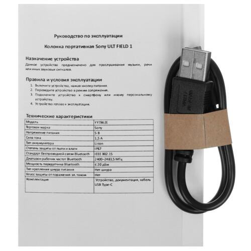 Черная портативная колонка Sony ULT FIELD 1 оснащена шнурком для переноски. Устройству не угрожает поломка при попадании струй воды, так как рабочие части защищены от воды. Попадание пыли может быть опасно для прибора. 12-часовая работа обеспечивается аккумулятором, при условии его полной зарядки. Колонка оборудована эквалайзером, который позволит настроить индивидуально звучание отдельных элементов музыки.