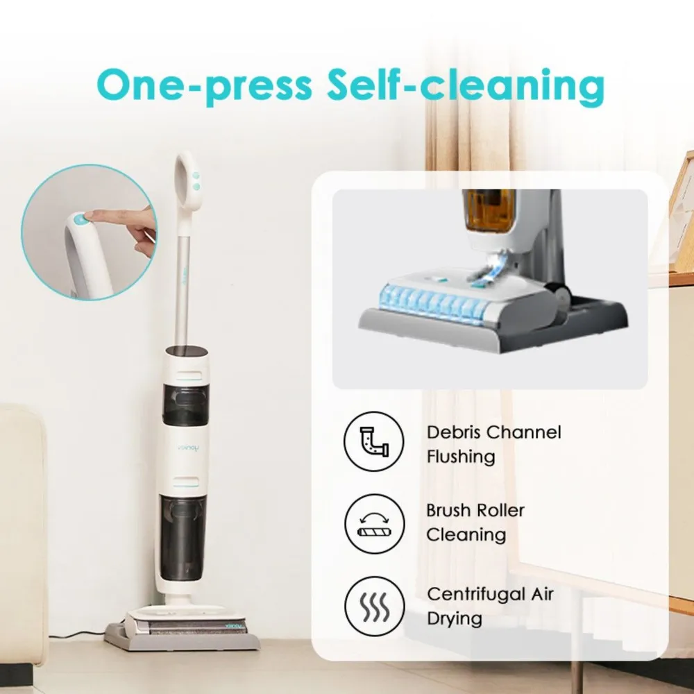 Yoniev пылесос Wet & Dry U5 – беспроводная модель. Она предназначена для единовременного выполнения двух типов уборки — сухой и влажной. Щетка примыкает к стене с одной стороны, позволяя проводить очистку вдоль плинтусов. Устройство удаляет пятна любой стойкости. Щетку можно наклонять на 30°. Это удобно для очищение полов и удаления пыли под мебелью. можно собрать пыль, скопившуюся под мебелью. Благодаря разделению потоков и двум герметичным емкостям для жидкости для влажной уборки используется только чистая вода. Детали устройства можно промывать под водой.
