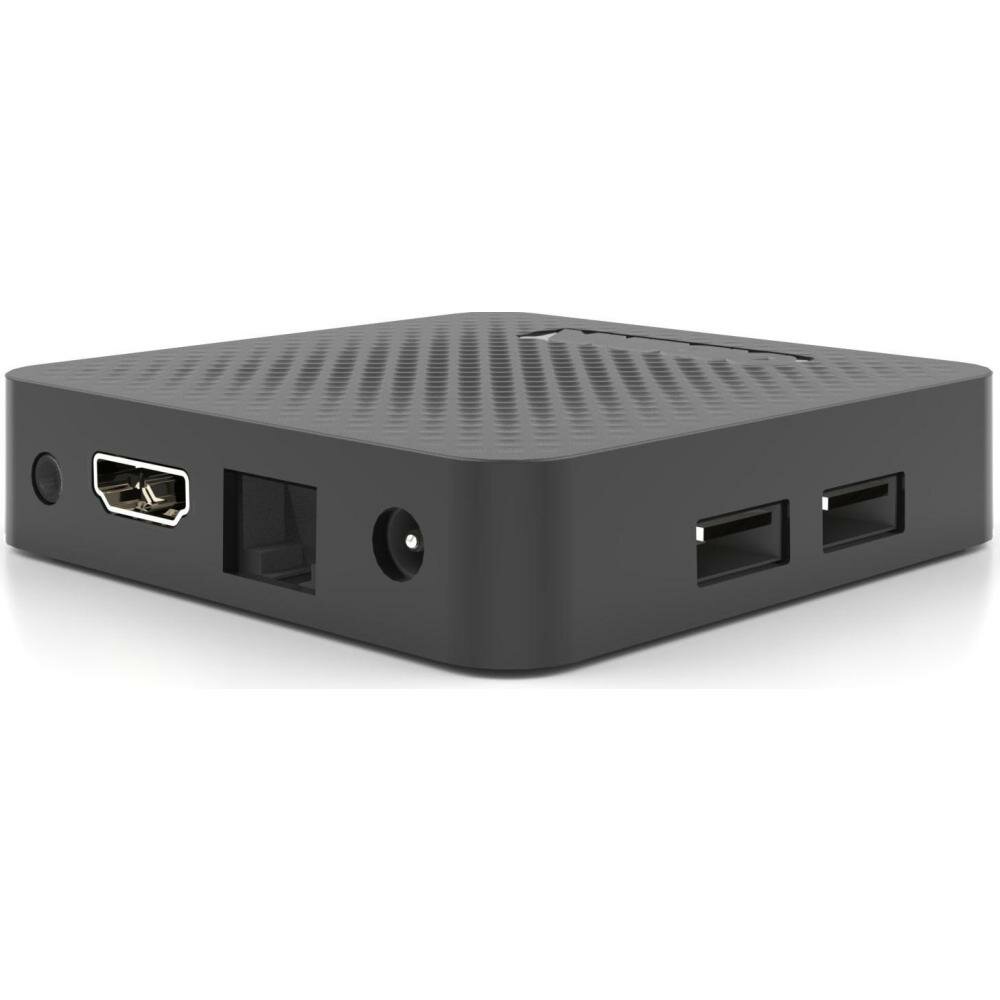 Выход в интернет возможен по Wi-Fi либо с помощью кабельного соединения через разъем LAN со скоростью передачи данных до 100 Мбит/с. Модель оснащена процессором ARM Cortex-A35, оперативной памятью 2 ГБ и постоянной памятью 16 ГБ. Пульт ДУ с функцией голосового управления, две батарейки AAA для него и блок питания входят в комплект. Размеры - 1,8х7,9х7,9 см, вес - 0,99 кг.