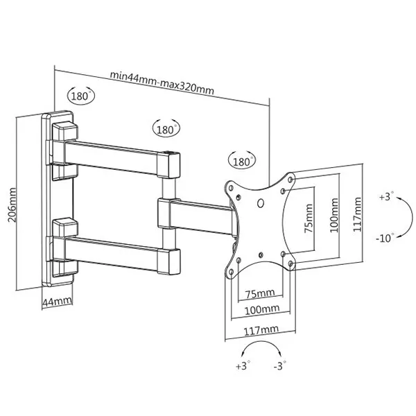 Настенный поворотно-наклонный кронштейн для телевизоров и мониторов с диагональю от 13 до 32 дюймов.