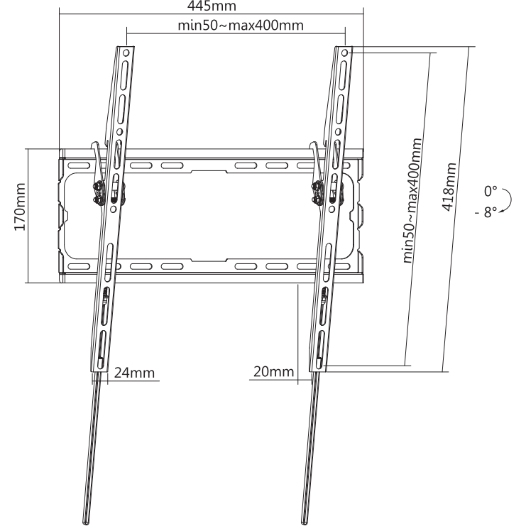 Всего 20 миллиметров до стены делают кронштейн KIVI Basic-44Т почти незаметным за ТВ-панелью. Таким образом, ваш интерьер останется лаконичным и изящным, несмотря на тщательно и надежно закрепленный телевизор. Между тем, просматривать фильмы и программы будет значительно приятнее и комфортнее также благодаря опции наклона на 8°.