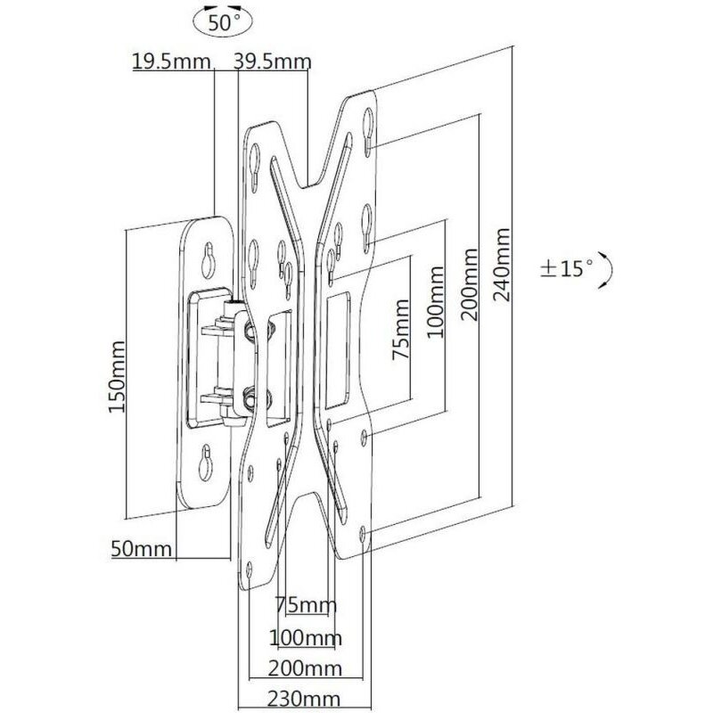 Размер VESA75x75, 100x100, 200x100, 200x200