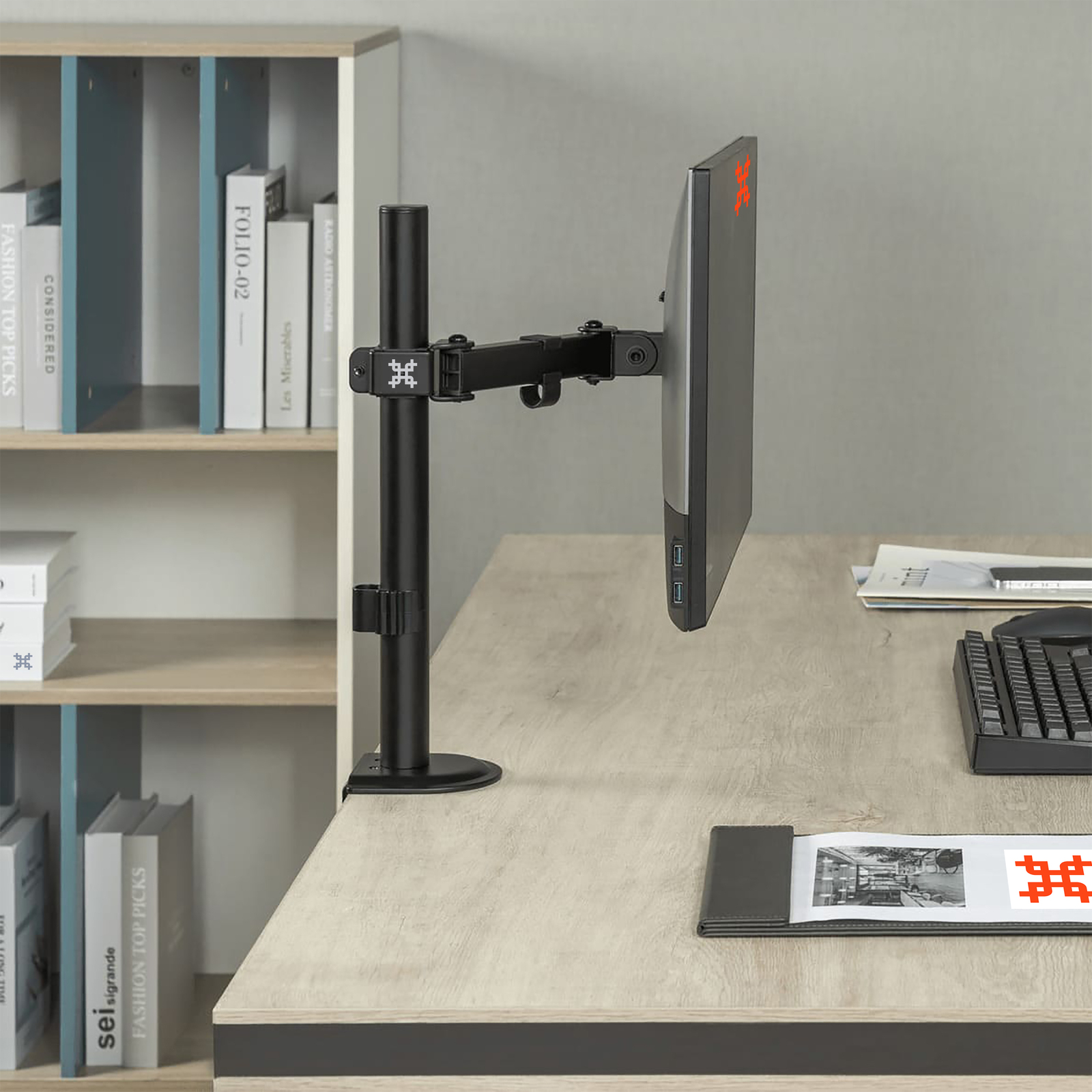 Вы сможете повернуть монитор и изменить расстояние по высоте на трубе лёгким движением руки, при этом монитор зафиксируется в настроенном положении.