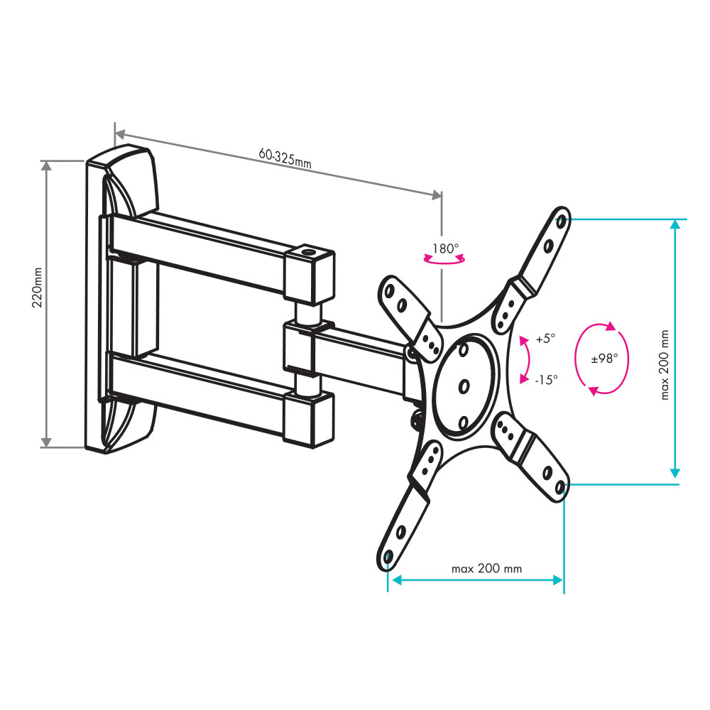 Расстояние от стены (мм):60-325