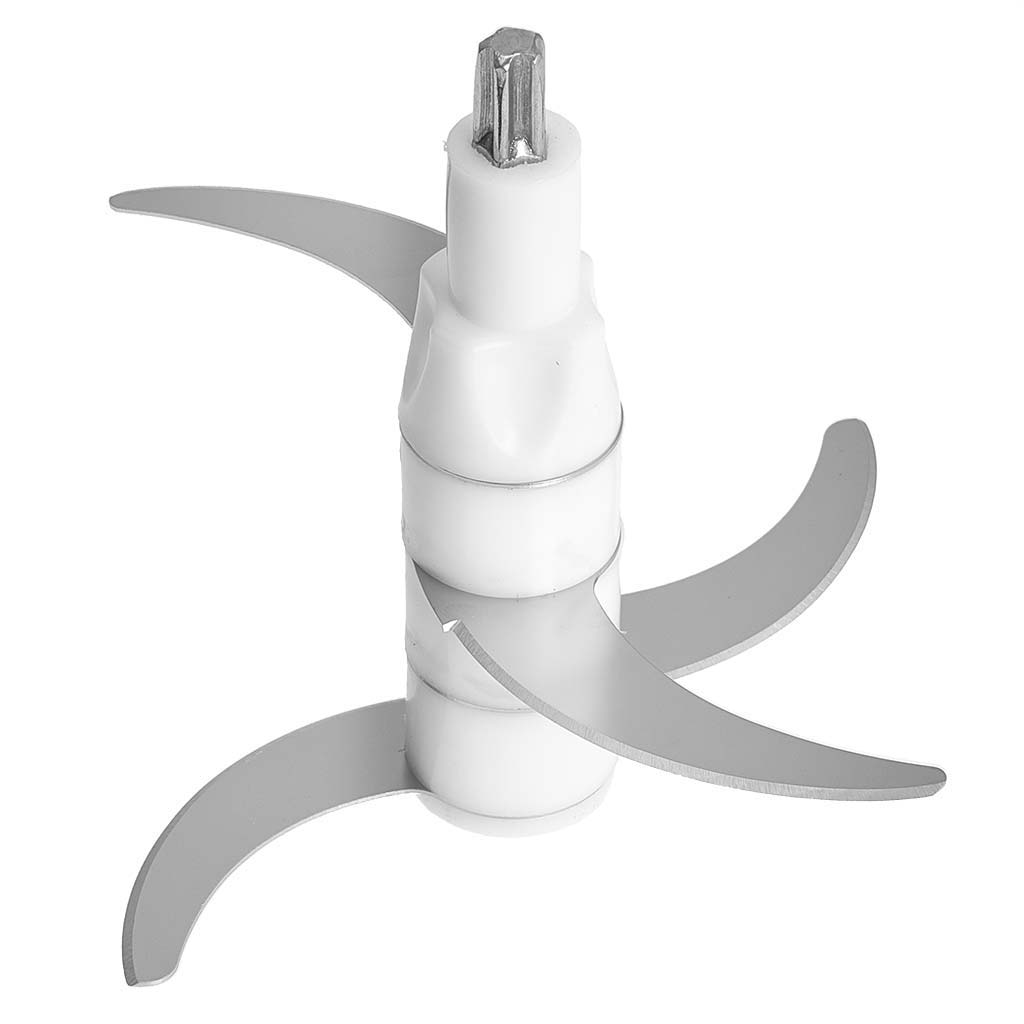 Оснащен прочными двойными лезвиями из нержавеющей стали для измельчения мяса, рыбы, яиц, сыра, хлеба, моркови, чеснока, петрушки, овощей, кофе, орехов и т.п.