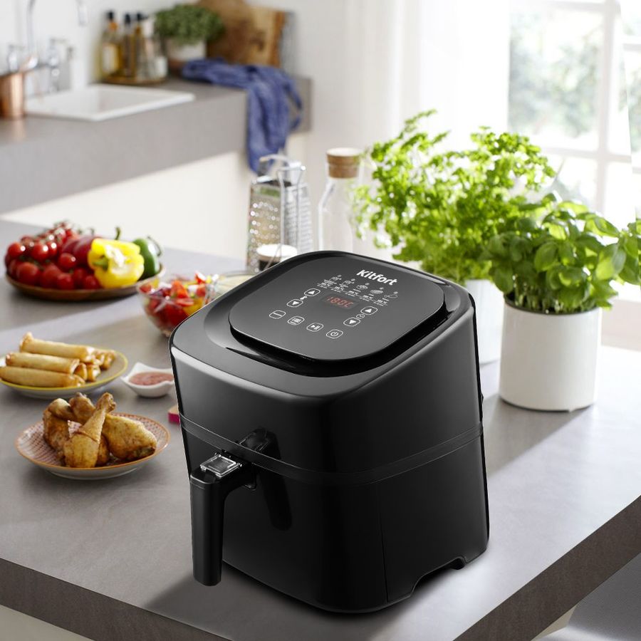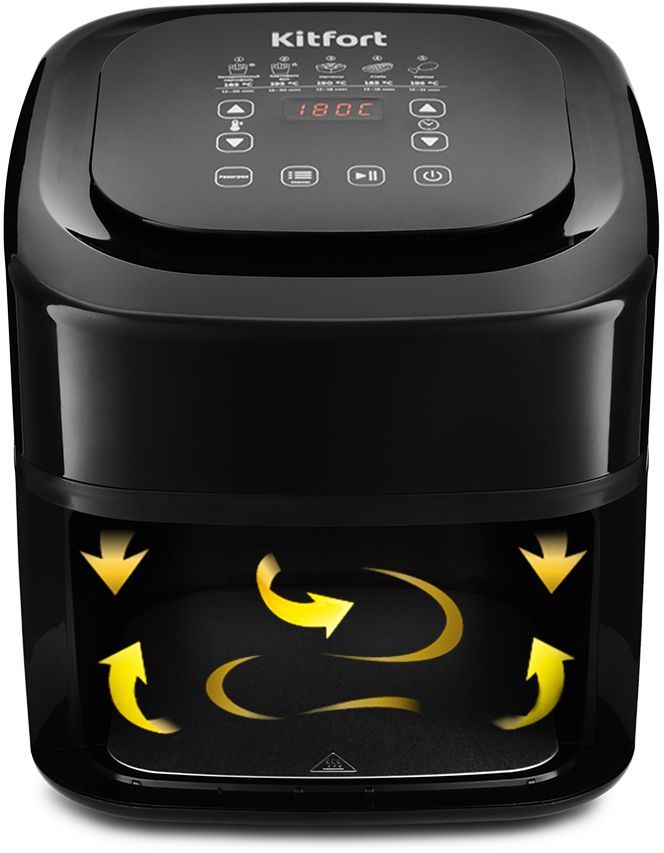 Описание: Аэрогриль, аэрофритюрница и духовка. Позволяет готовить большинство продуктов с минимальным количеством масла или вовсе без его добавления. Благодаря циркуляции горячего воздуха, продукты обжариваются со всех сторон, получаясь при этом нежными внутри и с хрустящей корочкой снаружи. Аэрогриль оснащён электронным управлением, он имеет 5 автоматических программ. Каждая программа имеет свою температуру приготовления, время готовки задаётся автоматически, исходя из веса продуктов. В инструкции представлены рецепты разнообразных блюд. Съёмный поддон и корзина имеют антипригарное покрытие, благодаря чему они легко чистятся после использования, а блюда можно готовить практически без добавления масла.