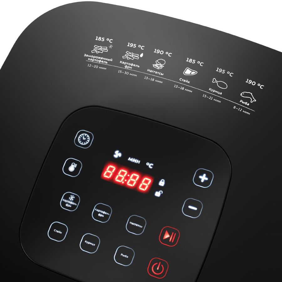 Описание: Аэрогриль, аэрофритюрница и духовка. Позволяет готовить большинство продуктов с минимальным количеством масла или без него. Благодаря системе циркуляции горячего воздуха, продукты обжариваются равномерно со всех сторон, получаясь при этом нежными внутри и с хрустящей корочкой снаружи. Аэрогриль оснащён электронным управлением, он имеет 6 автоматических программ. На дисплее отображаются температура и время приготовления. Съёмный поддон и корзина имеют антипригарное покрытие, благодаря чему они легко чистятся после использования, а блюда можно готовить практически без добавления масла.