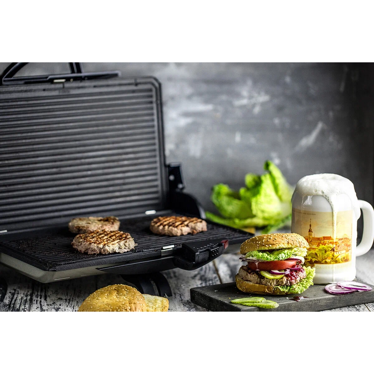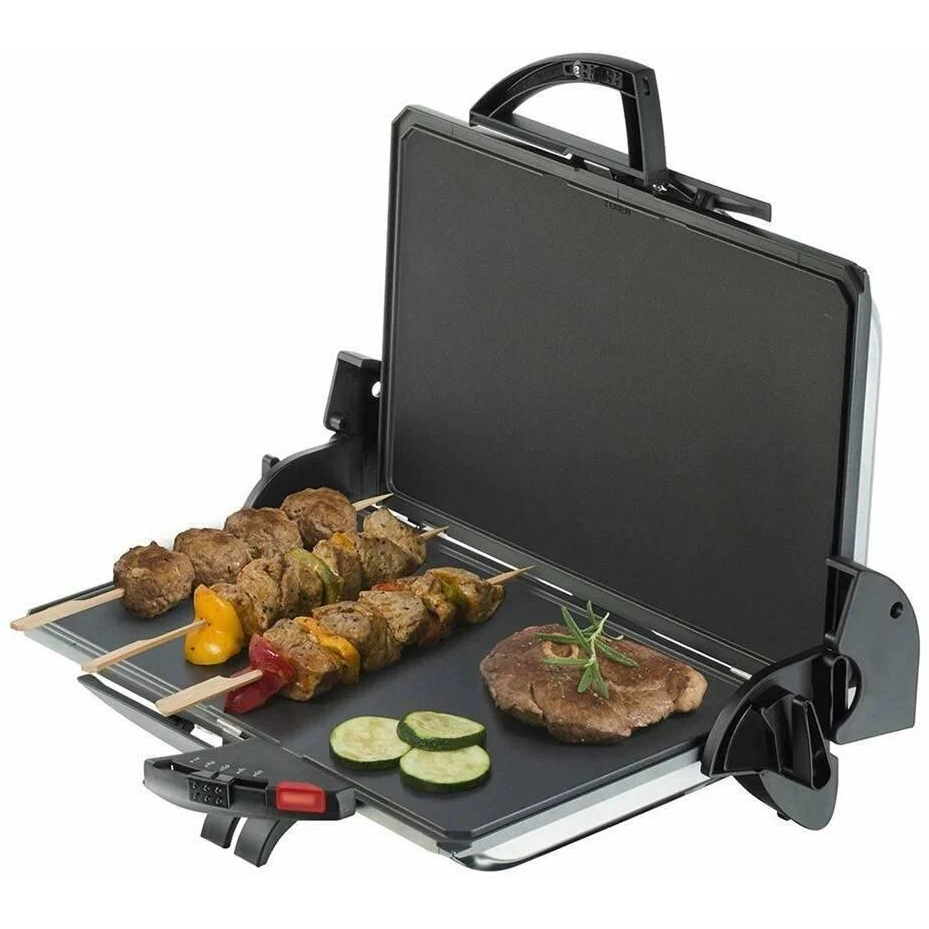 съемные панели; замок на ручке гриля; рабочая поверхность 37х23 см; в комплекте 2 пластины рифлёная/гладкая