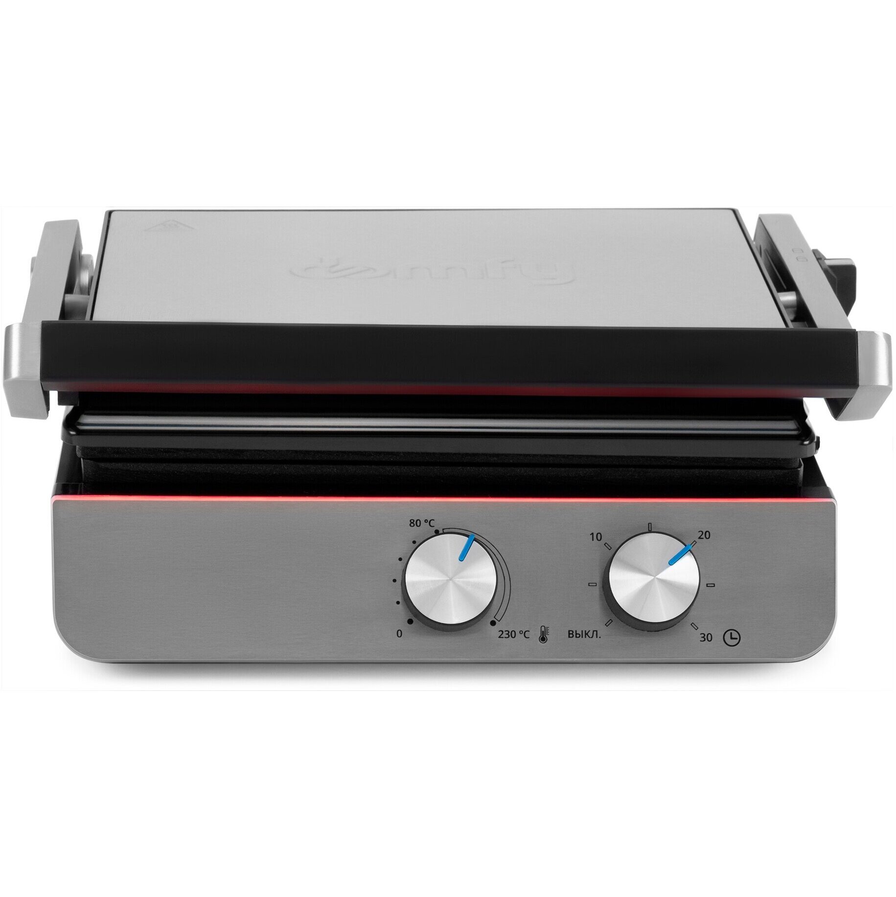 Установка времени приготовленияестьУстановка температуры приготовленияестьЛоток для сбора жираестьИндикатор включенияестьИндикатор нагреваестьЗвуковой сигналестьФиксация в закрытом состоянииестьНенагревающаяся ручкаестьРаскрытие на 180 градусовестьОсобенностиВерхняя крышка имеет «плавающий» фиксатор и адаптирует свое положение под любой продукт с максимальным касанием к панели нагрева.Корпус
