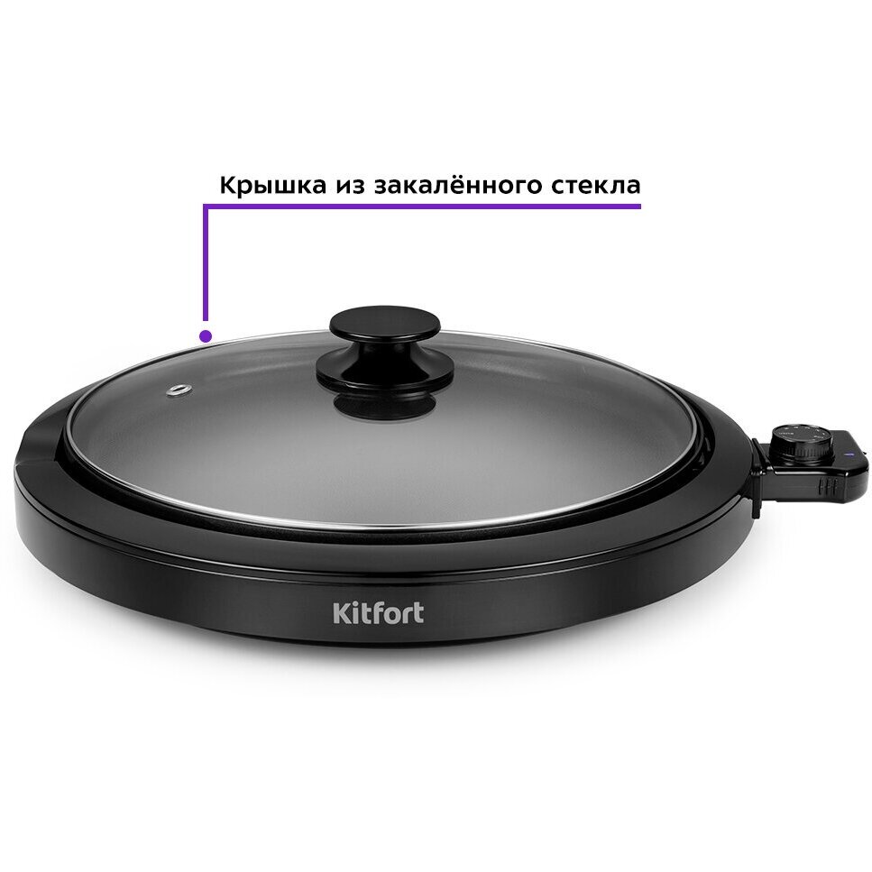 Гриль накрывается крышкой из закалённого стекла, через которую можно наблюдать за процессом приготовления. На крышке расположена удобная ручка, она не нагревается. При закрытой крышке приготовление проходит ещё более эффективно.