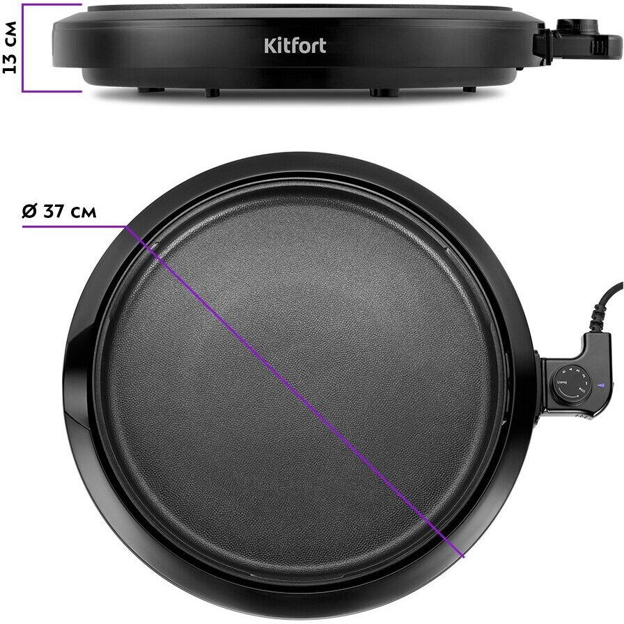 Уникальность данной модели гриля — корпус в виде круга с диаметром панели 37 см, обеспечивает хорошую вместимость продуктов и компактность прибора. Толщина вместе с крышкой всего 13 см. Гриль не займёт много места и поместится даже на узкую полку.