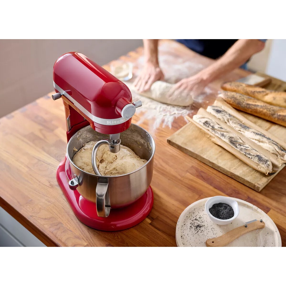 Спиральный крючок для теста из нержавеющей стали: Легко перемешать и замесить тяжелое тесто: быстро получается готовый хлеб, когда тесто не нужно замешивать вручную. Для оптимального использования чаши объемом 6,6 литра. Столешницу можно стирать в машине.