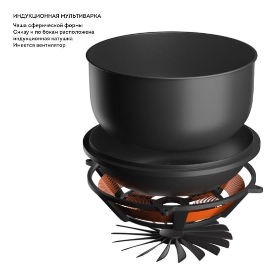 Технология индукционного нагрева обеспечивает мощный и равномерный разогрев по всей поверхности. В отличие от стандартных мультиварок индукционной не требуется время на разогрев, прибор сразу выходит на нужные параметры работы. Благодаря моментальному и равномерному нагреву под действием индукционного поля блюда готовятся значительно быстрее, чем на плите или в обычной мультиварке.