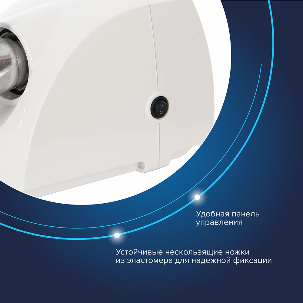 Устойчивые нескользящие ножки из эластомера для фиксации мясорубки на поверхности стола.