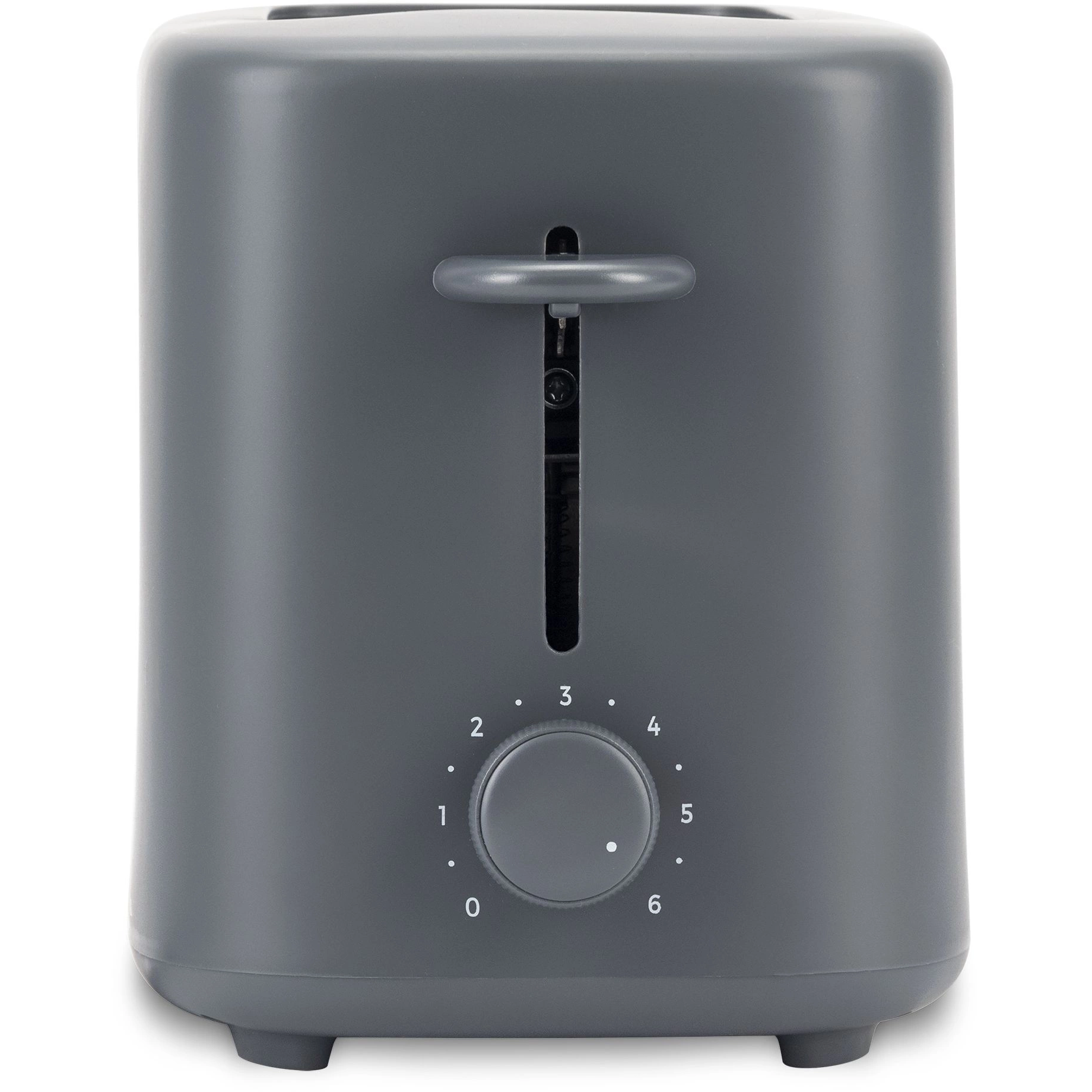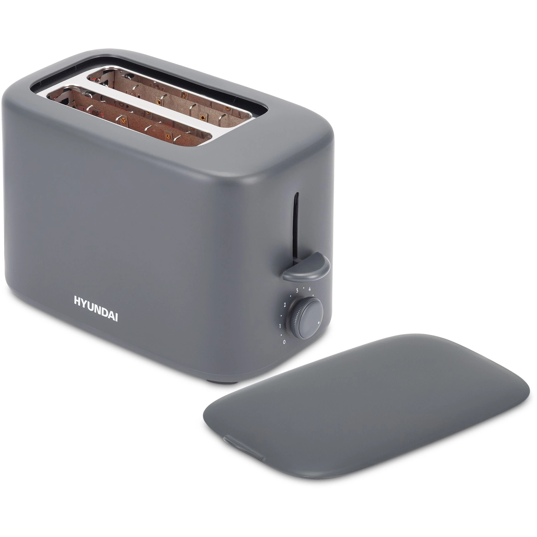 Компактный тостер со стандартными слотами для двух тостов, торцевое управление, трендовый серый цвет. Только тостер, все что нужно.