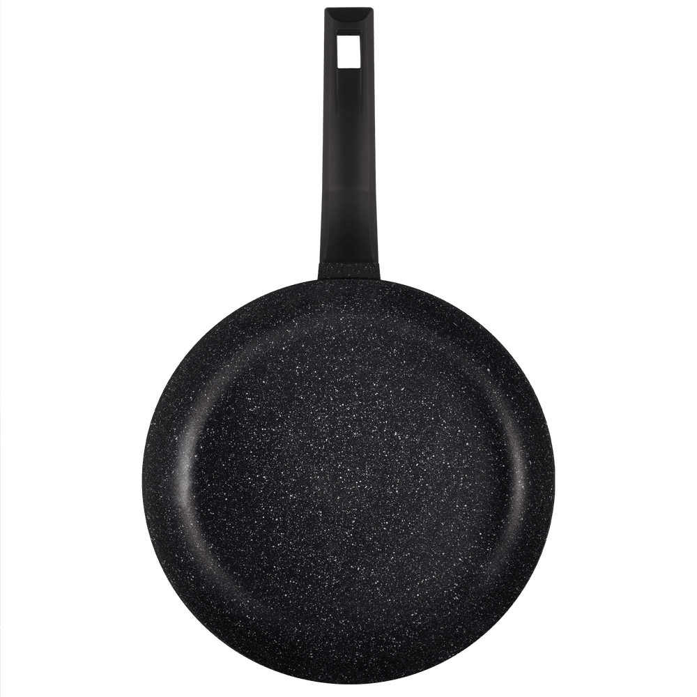 Сковорода с эффектным мраморным покрытием и современной ручкой в универсальном цвете, будет отлично сочетаться с любой кухней.
