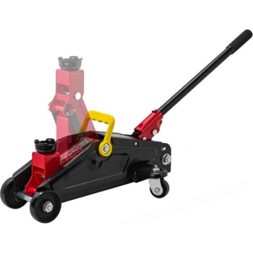 Колеса: Две фиксированные и две поворотные колеса позволяют легко перемещать домкрат по рабочей зоне, что делает его удобным в использовании.